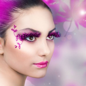 1、小眼睛的眼线:上下眼线应稍粗些,起始部应超过泪点,尾部略超过外眦角并向上平出,这样眼睛可显大些。