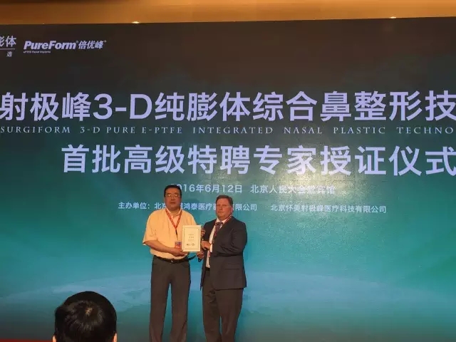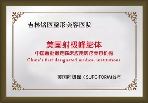 2016年6月12日,吉林铭医整形作为吉林省为数不多的被邀请的整形机构,走进人民大会堂参参与了美国射极峰公司3-D纯膨体签发仪式,特聘我院杨晓光院长为美国射极峰综合鼻整形研究院首批特聘高级专家、并授权吉林铭医整形指定授权机构。