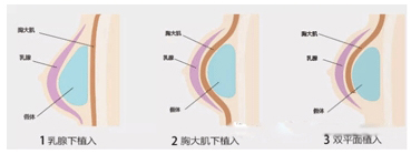 将假体置入胸大肌深层,此间隙本身就存在的一个潜在腔隙,可以减少假体破损和纤维囊性挛缩的机会,且摸不到假体边缘,但因为被肌肉包裹,波动感较差。