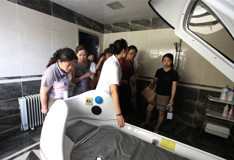 美容中心提供的服务,比很多美容院还要综合、专业,赵主任特别为市民介绍,美容中心还有一大亮点值得参观,就是这里的VIP豪华贵宾室,分为泰式和中式两种风格,在这里接受美容服务,既是对身体上的养护,更是对精神上的放松。市民徐女士风趣的说:“躺在这里的美容床上,简直比自己家的席梦思还要舒服。”