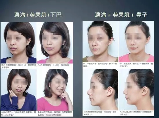 至后给出了从 “轴线美学 “的概念做延伸的概念:即用微整形的方式先将鼻子及下巴开始做填充及延长 ---- 确立中轴,立竿见影;补充苹果肌的膨度 ---- 将亮点集中在脸部的正前方;修饰 Jowl line ---- 让下巴的线条更加柔顺,自然产生 V 脸线条。