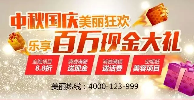 当天在美容部充值100000元及以上顾客可参加院内乐享百万现金礼活动,同时加赠15%储值