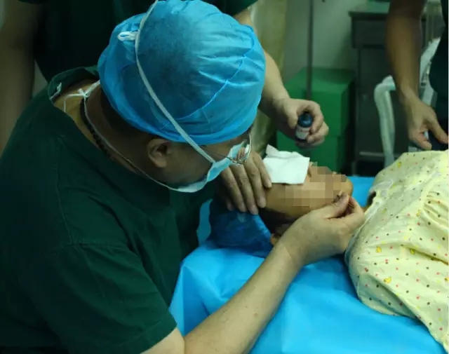 (12月21日下午,铭医整形整形外科院长杨晓光为小滢滢做颜面修复手术。)