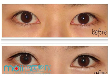 形成原因:双眼皮线设计在9-10mm宽或以上,切除上睑松弛皮肤过多常常会使双眼皮过宽。