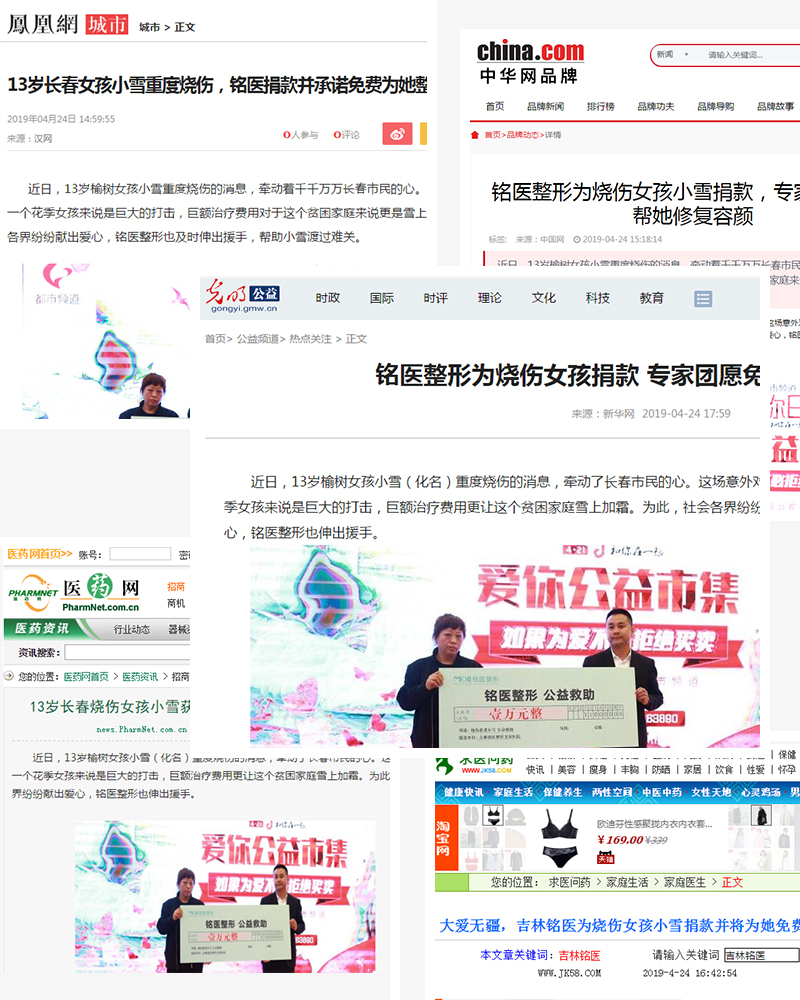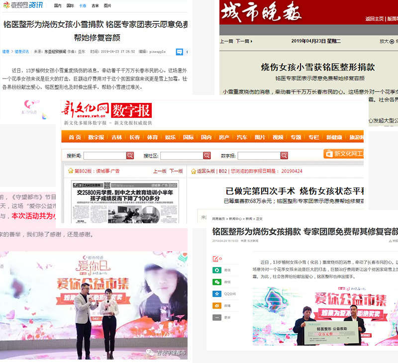 都市频道、新华网、新浪网、腾讯网、搜狐网、新文化报、东亚经贸新闻等权威媒体,对铭医整形的善举进行了现场采访。铭医集团副总裁沈彦春说:“得知小雪的伤情,我感到非常难过,希望我们的捐助能减缓她家的经济压力,并衷心祝愿孩子能早日出院。”